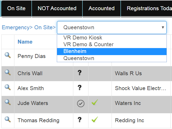 Not Accounted - shows you who has not been accounted for. They will have a ? in the OK column.