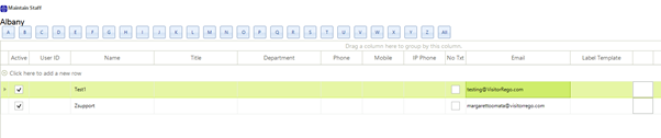 Step 4.Click the rectangle to the left of the checkbox next to their name. An arrow will appear in the box and the selected person will be highlighted. Alternatively, to delete a name from 'Meeting With' uncheck the'Active' box, they will still remain on the system but not appear in the Self Registration 'Meeting With' field. Step 5.Hit the‘Delete’button on your keyboard. Step 6.Done! The staff member has now been deleted and will not appear in the‘Staff’list. Using an Active Directory If the staff list is housed in an Active Directory changes will need to be made there. That way any changes made in the AD can be integrated into VisitorRego and VR Portal. Otherwise if you make changes in VisitorRego and/or at the VR Portal the Active Directory will override these changes. After the staff member has been deleted from the Active Directory it depends on your AD Extract settings as to when the change will be reflected in VisitorRego and the VR Portal.