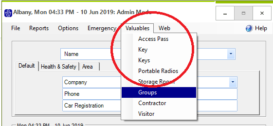 Step 8. Add all valuables to the register. From there you can assign valuables to visitors using VisitorRego.