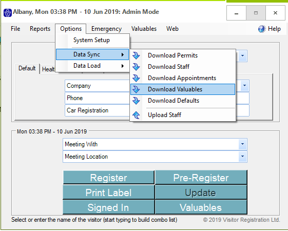 The valuables you added will download to the VisitorRego system overnight when the synchronisation with the VR Portal occurs.