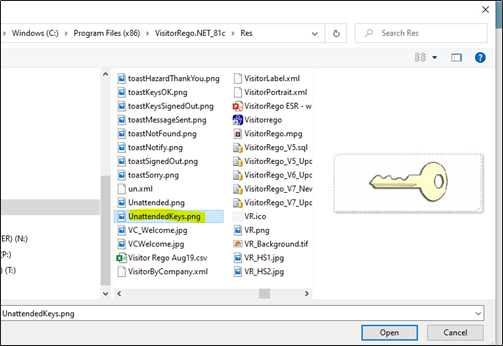 The file is UnattendedKeys.png which resides in the Res folder -C:\Program Files (x86)\VisitorRego.NET\Res