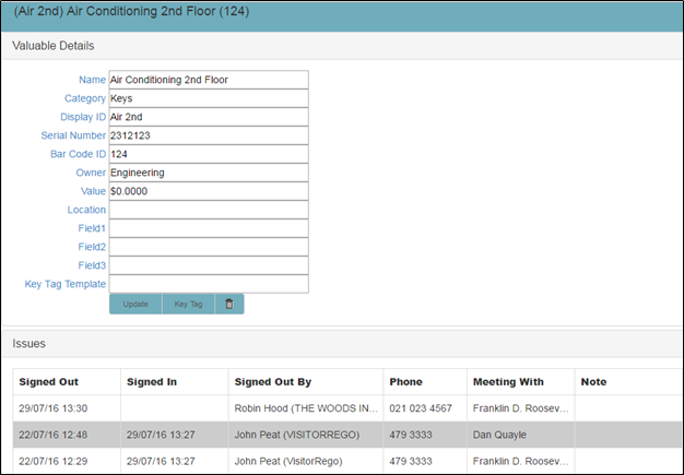 Step 4. The valuable has now been signed out.